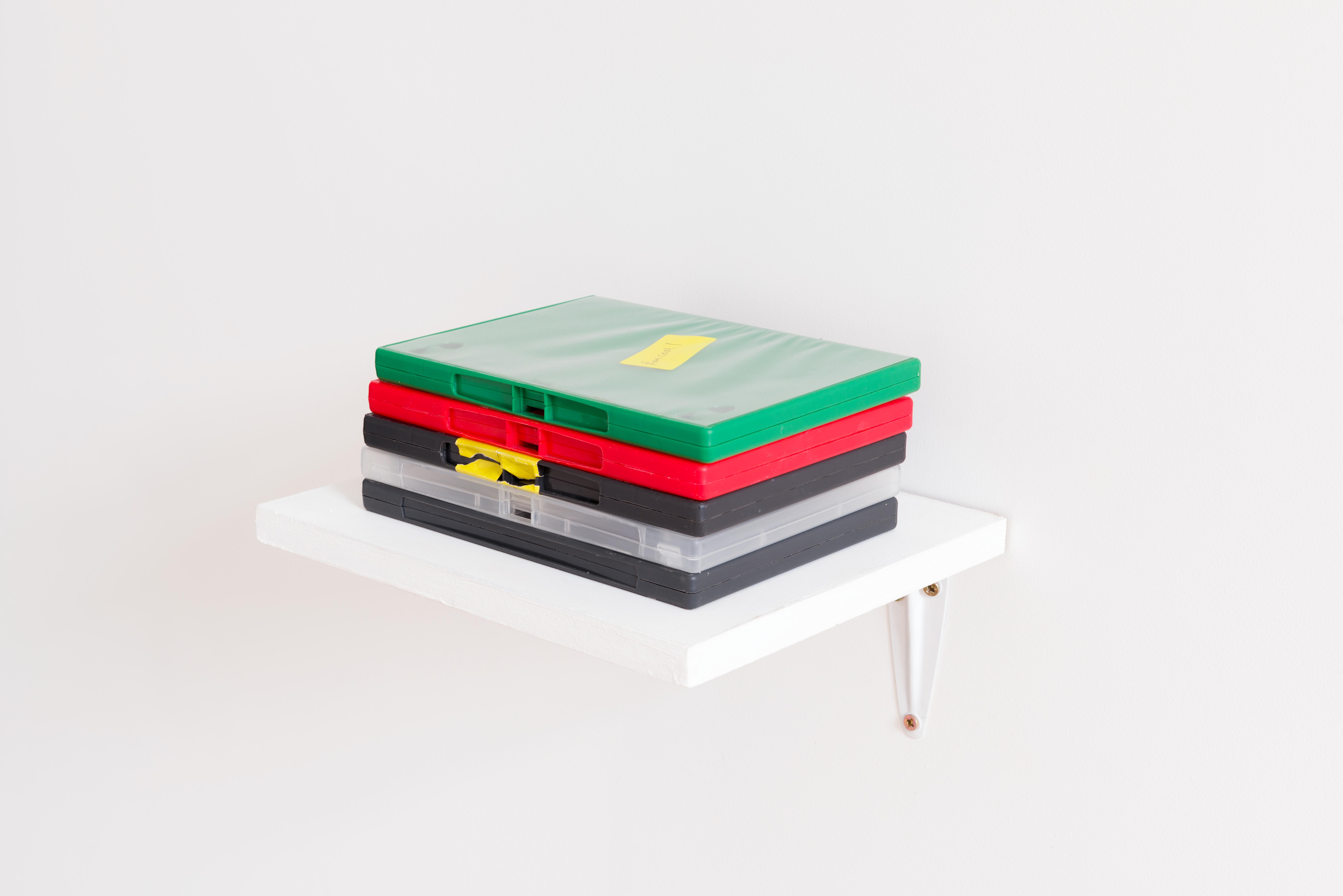 Sitting below the second, closed, window is witnesses (2022), a work that captures light during the day and emits light in the evening: a proto-cinema of sun rays. Entering or leaving the gallery one encounters hold (2021), a copy of which can be rented from Kantine by oral contract.