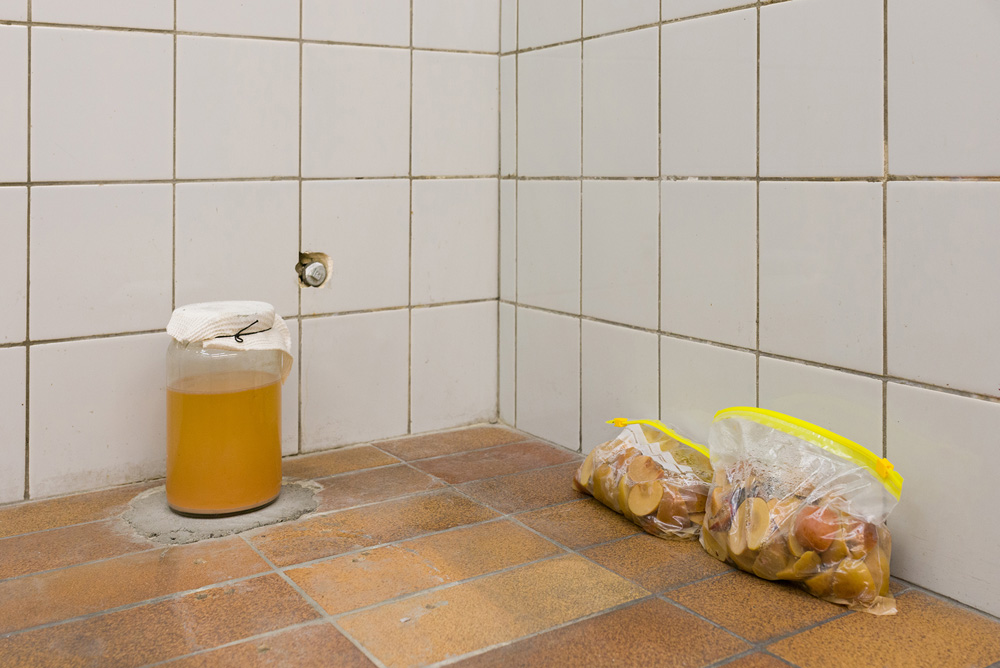 In the gallery we smell the sweet and acrid odour of homemade apple vinegar. Vinegar, literally "sour wine” is a natural preservative made from a fermentation process, today used as a condiment, a pickler, a cleaner. Although the profile of vinegar is as much brutal sensation (coughing) as flavour, it has interesting properties beyond that. Hildegard von Bingen, celebrated medieval mystic, thought that vinegar caused food to journey through the human body “as it should”. Vinegar opens up the palate to fully experience flavours and acts as a vehicle for flavours to comingle. Vinegar, then, is an opener, a carrier, a balancer that brings us to a state of “enhanced things-as-they-are”. A tang of beatitude.