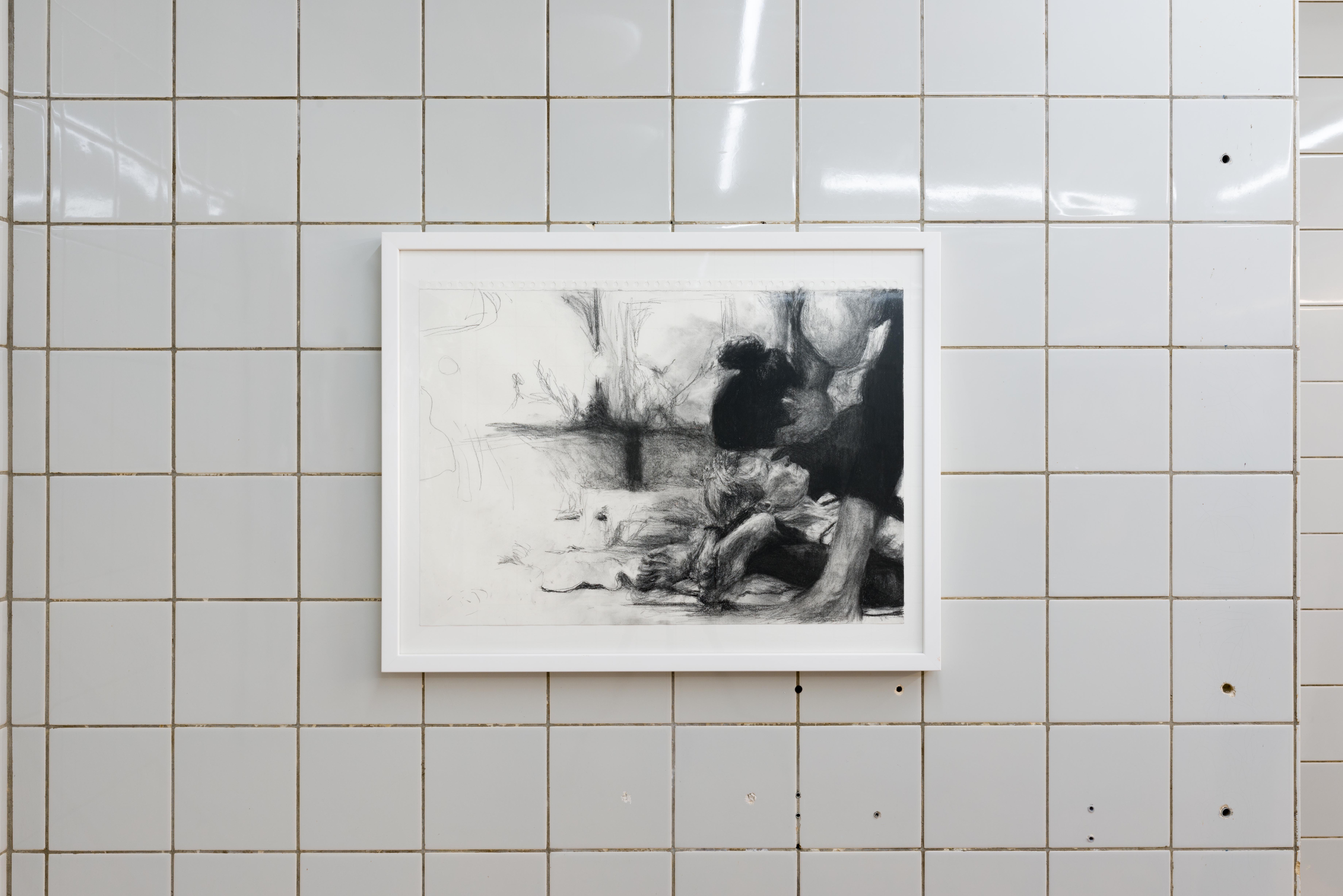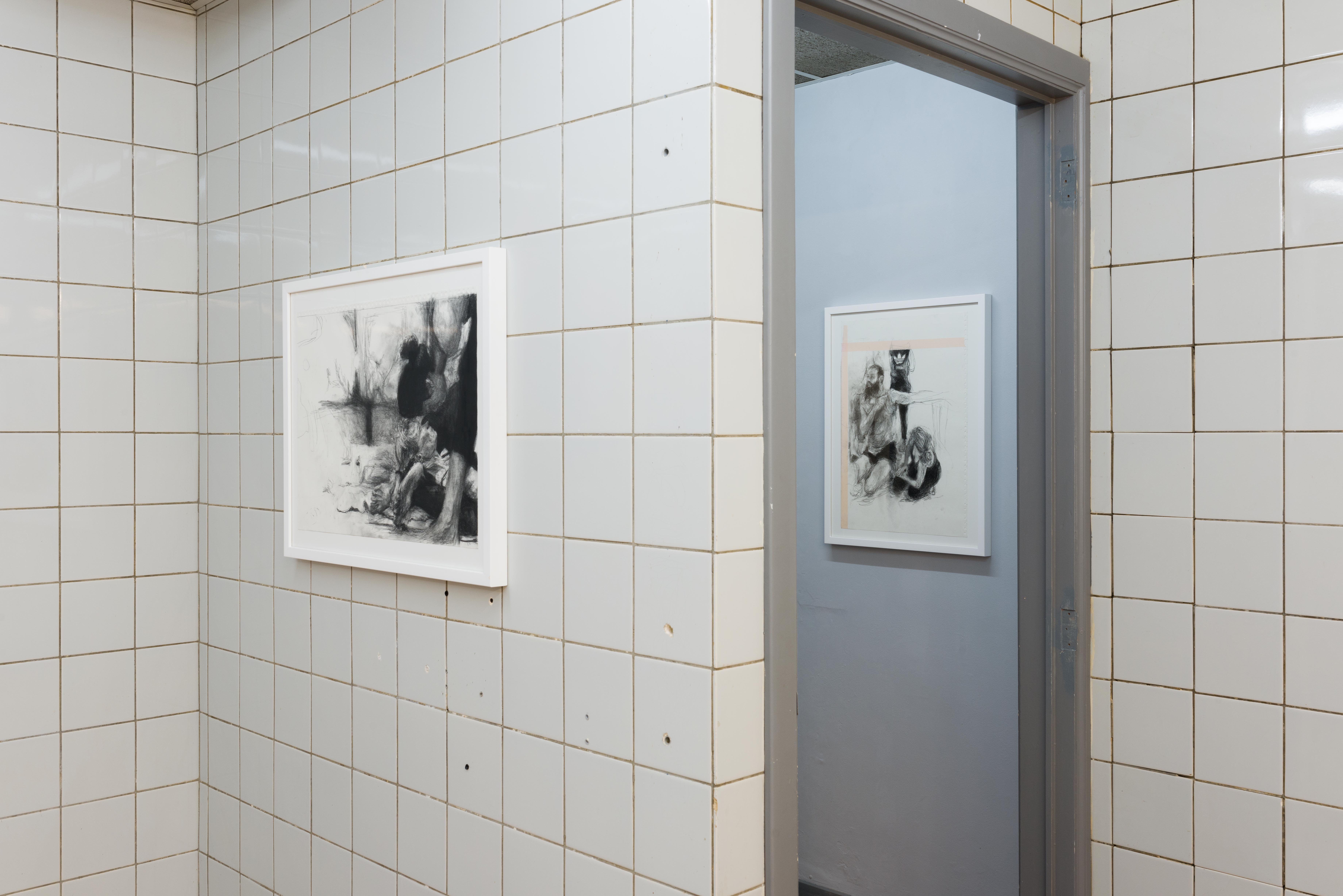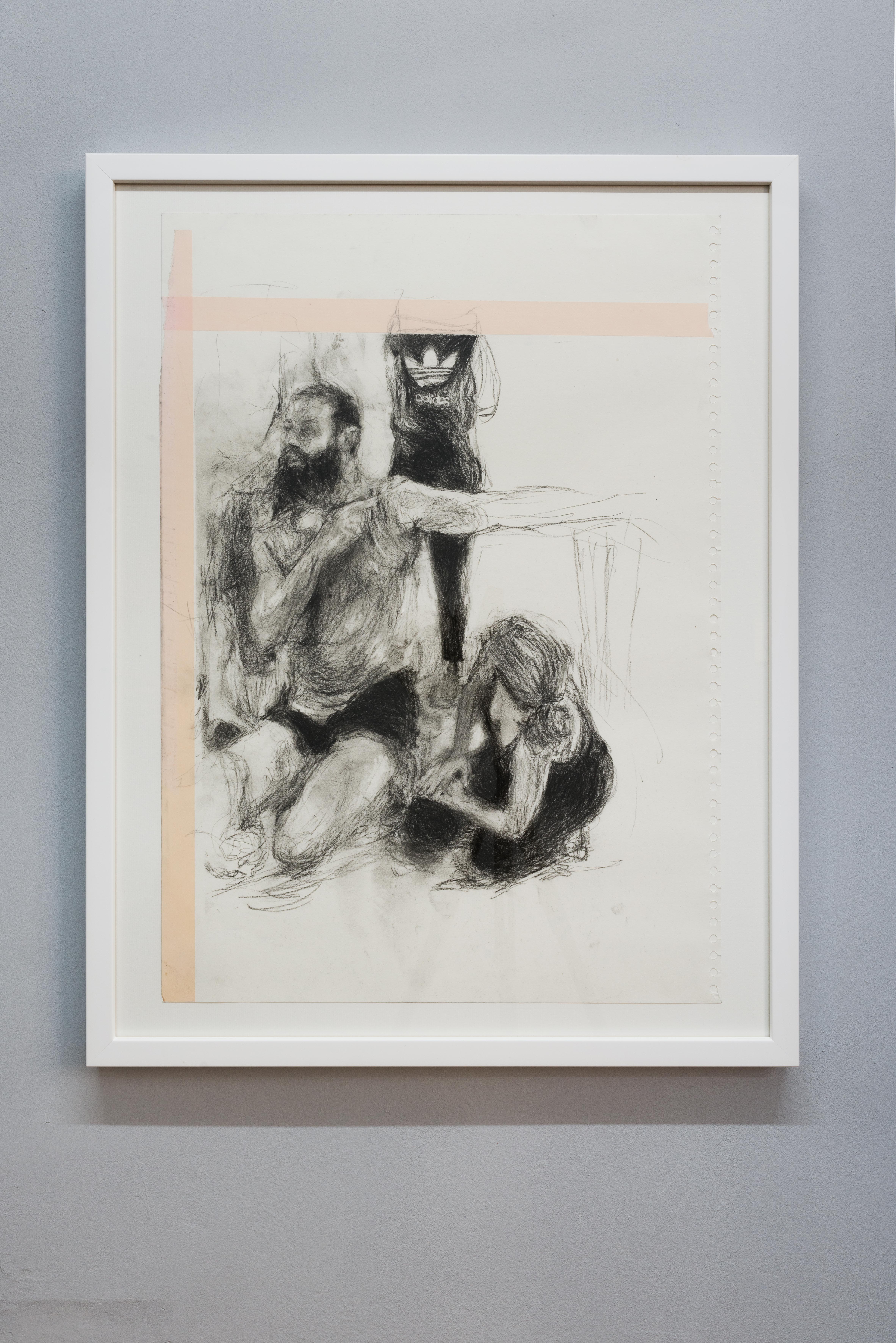 Within the exhibition space of Fitness Studies, the paintings’ broken perspectives stretch and join together into a stadium or an anatomy theatre. The paintings are socialised into a group where an instructor is always present. They position us: where we look and how we move.