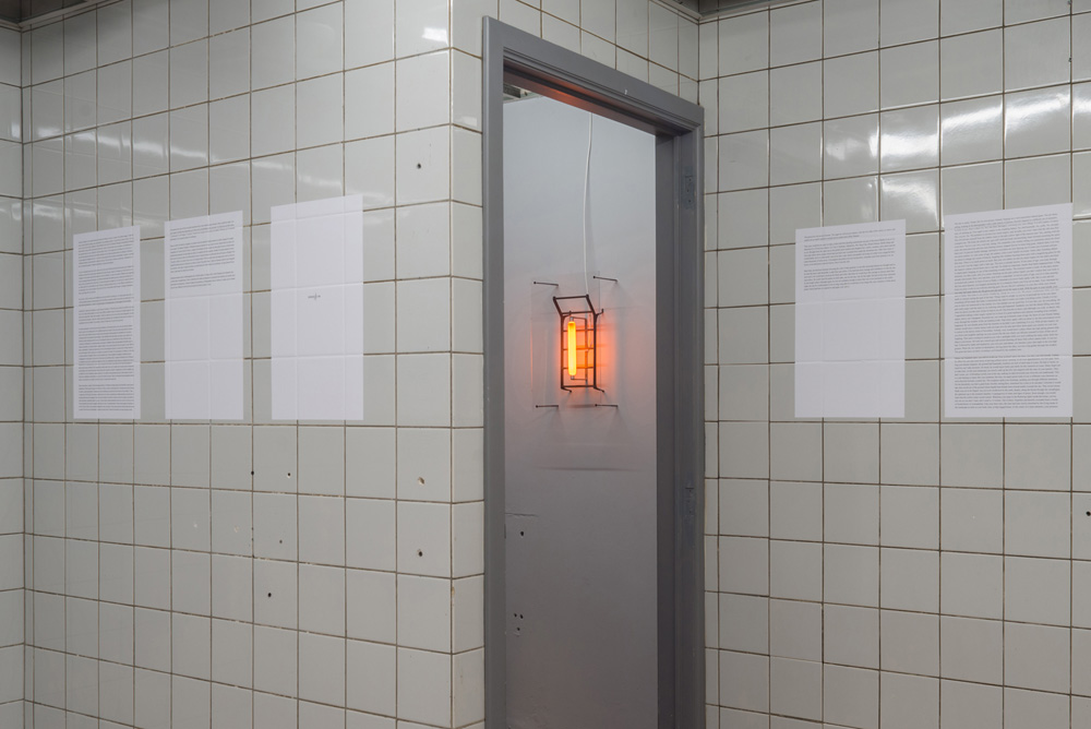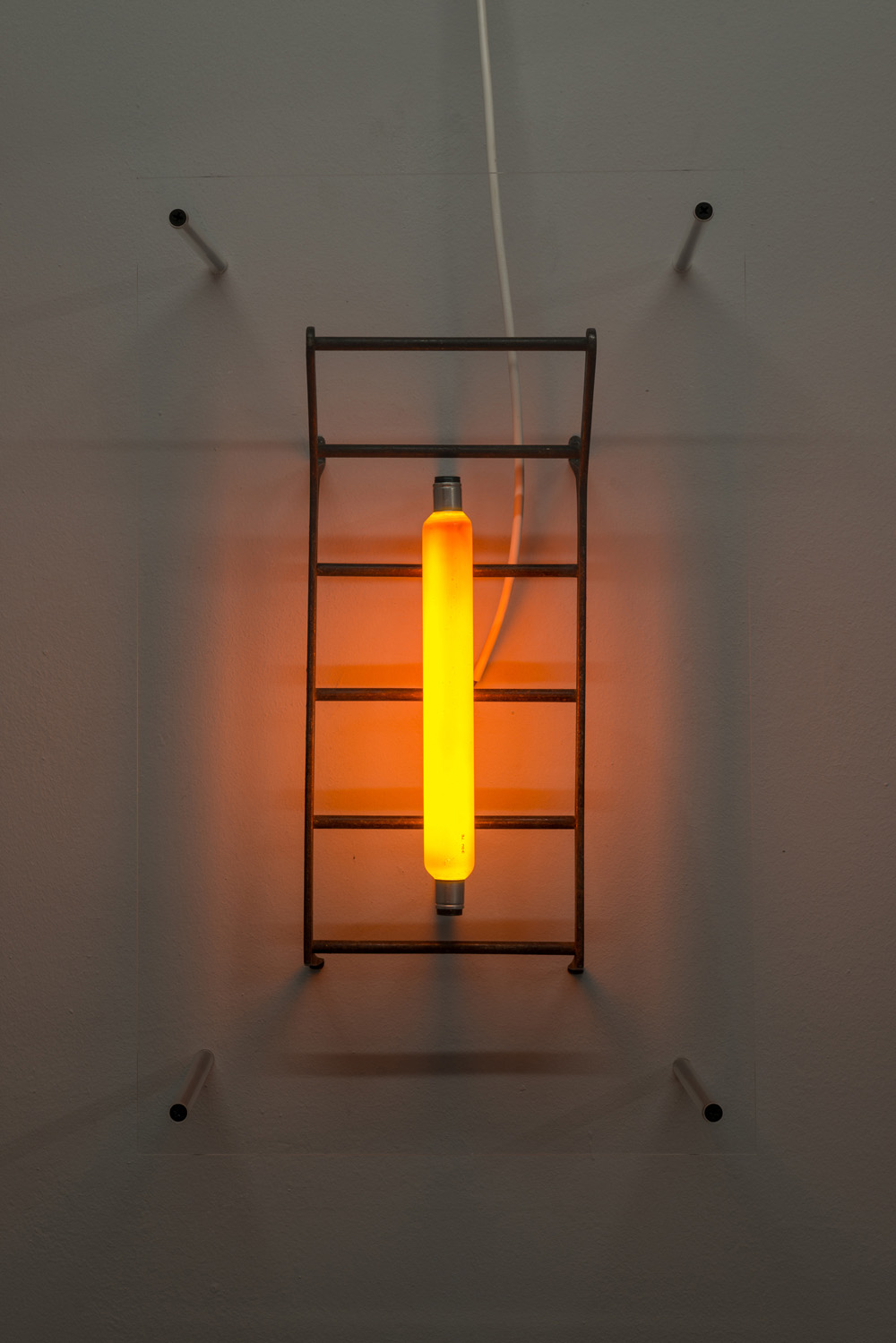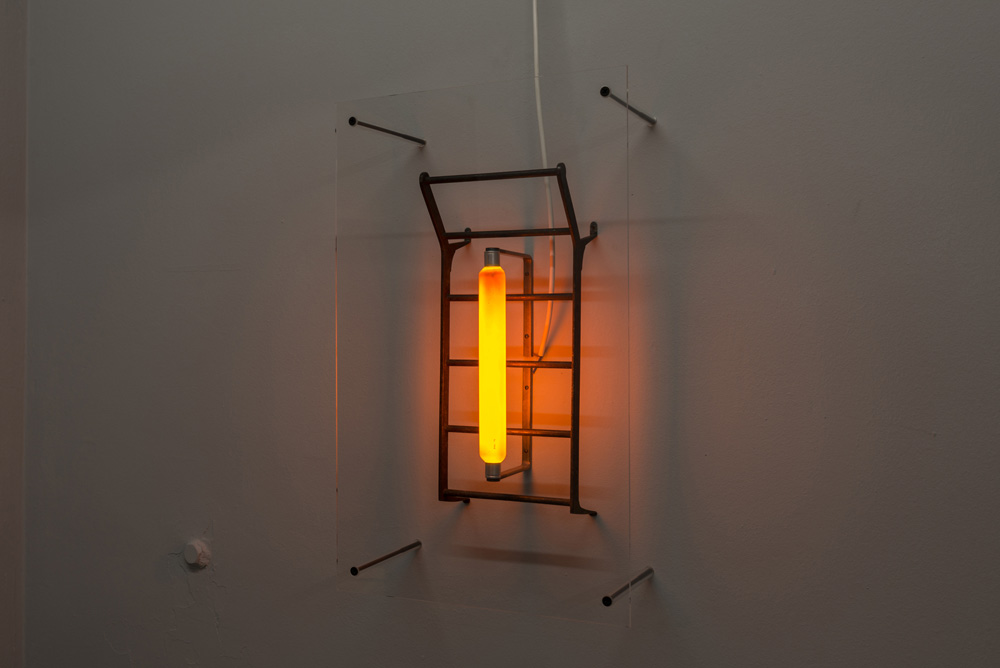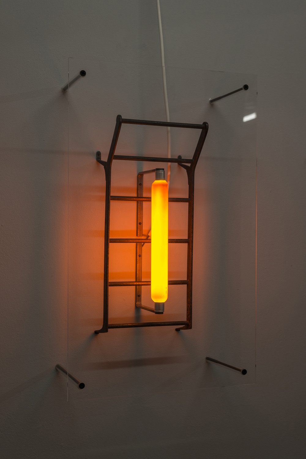Steel, strip light tube lamp, acrylic glass, drywall screws, electric cable