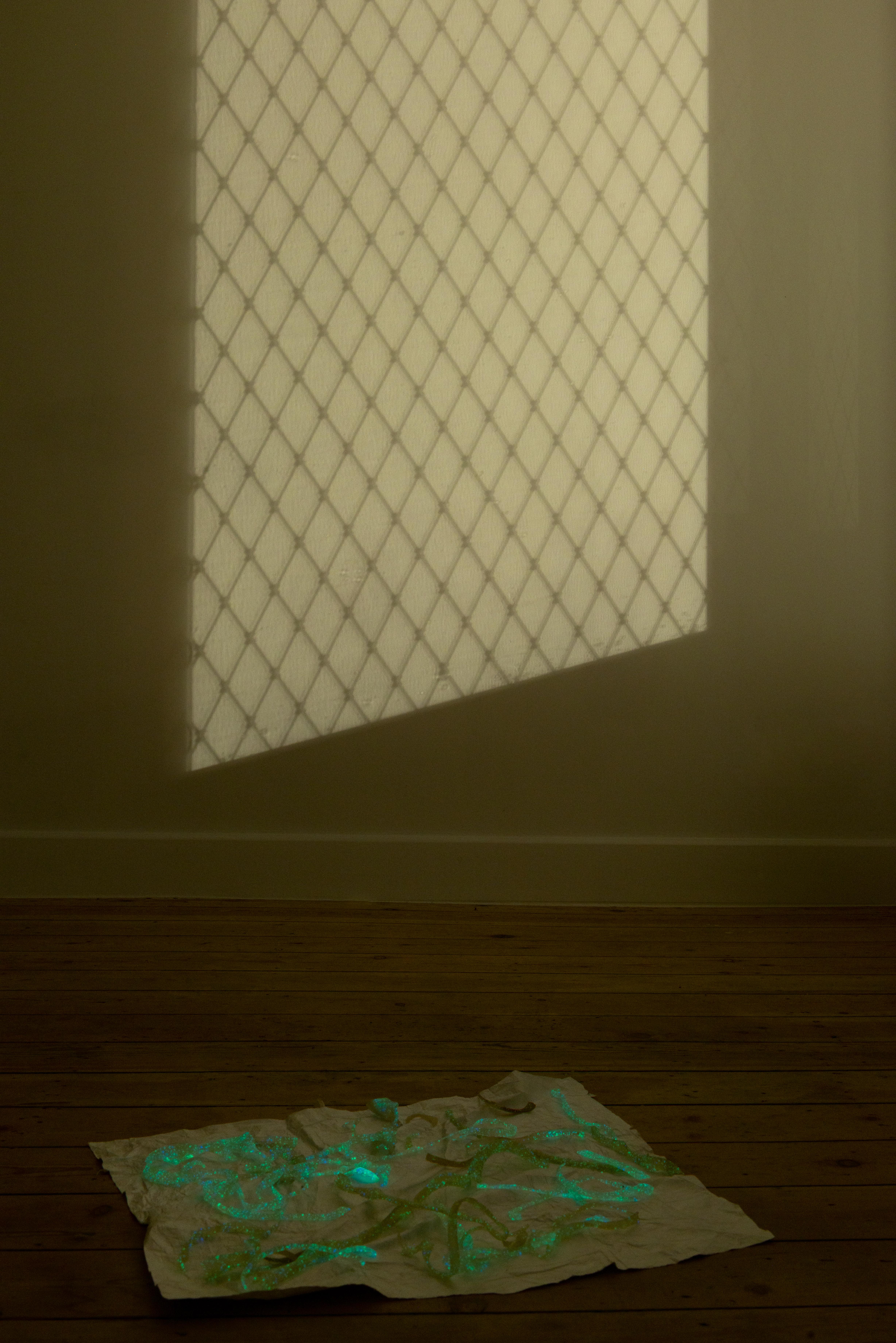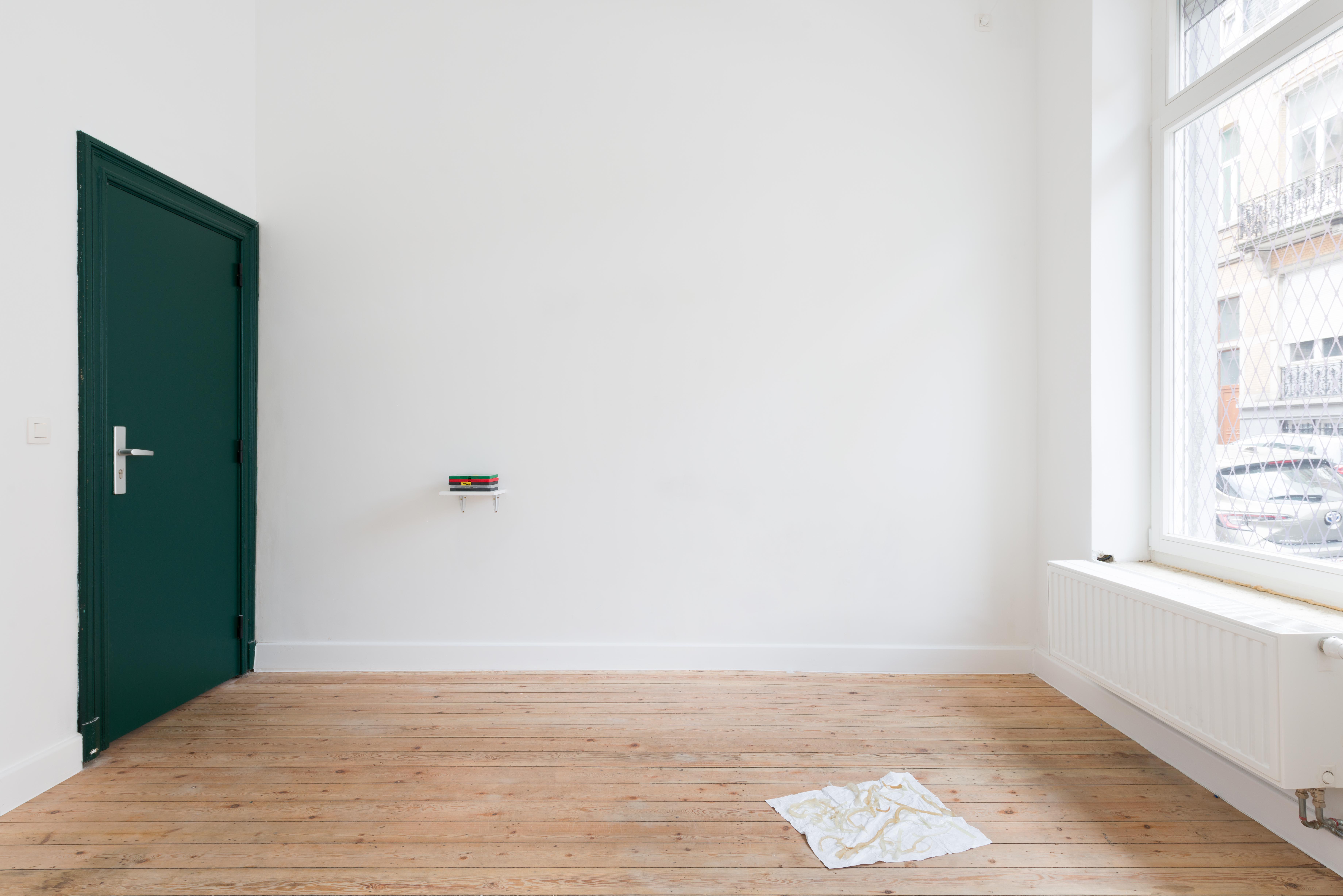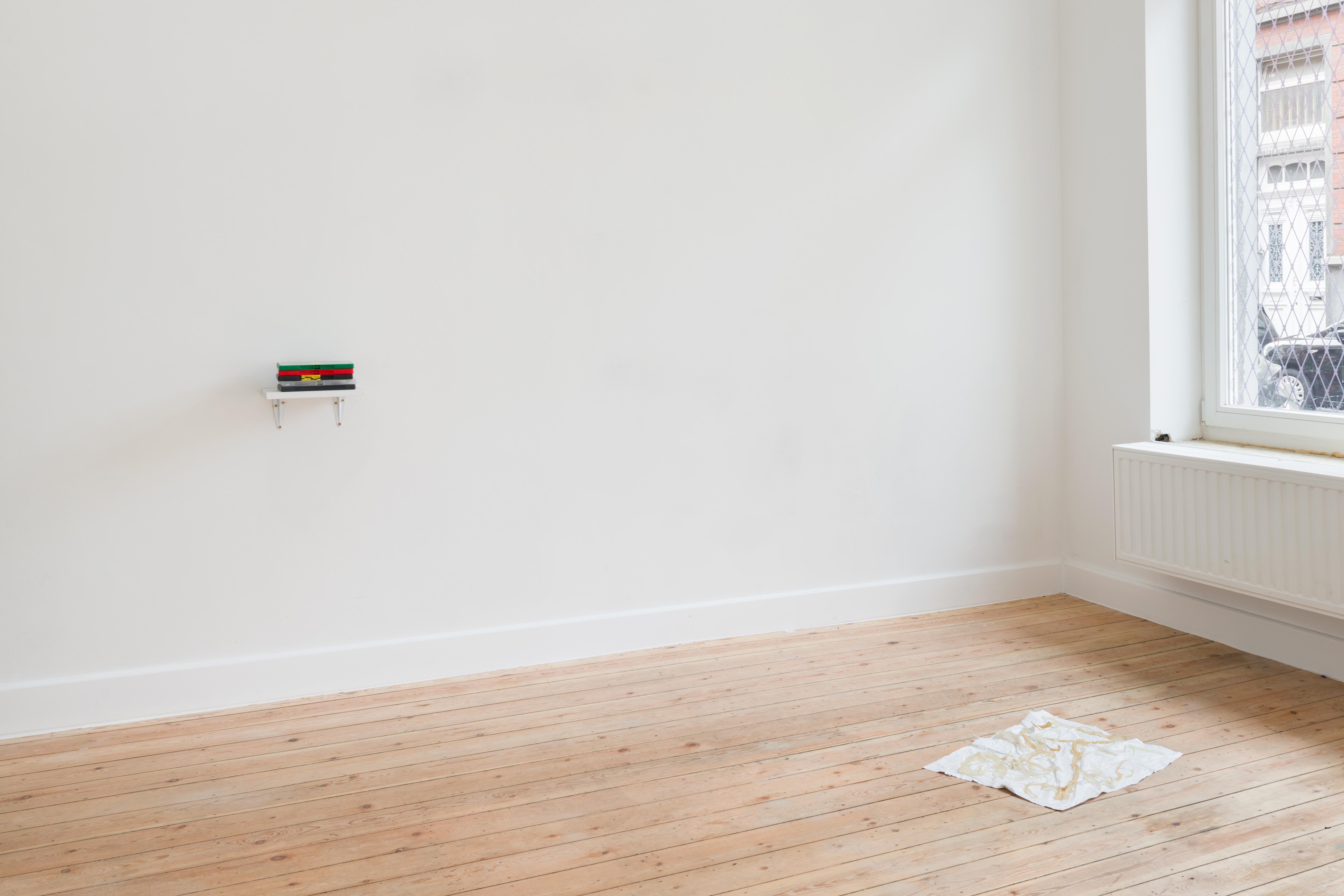 Sitting below the second, closed, window is witnesses (2022), a work that captures light during the day and emits light in the evening: a proto-cinema of sun rays. Entering or leaving the gallery one encounters hold (2021), a copy of which can be rented from Kantine by oral contract.