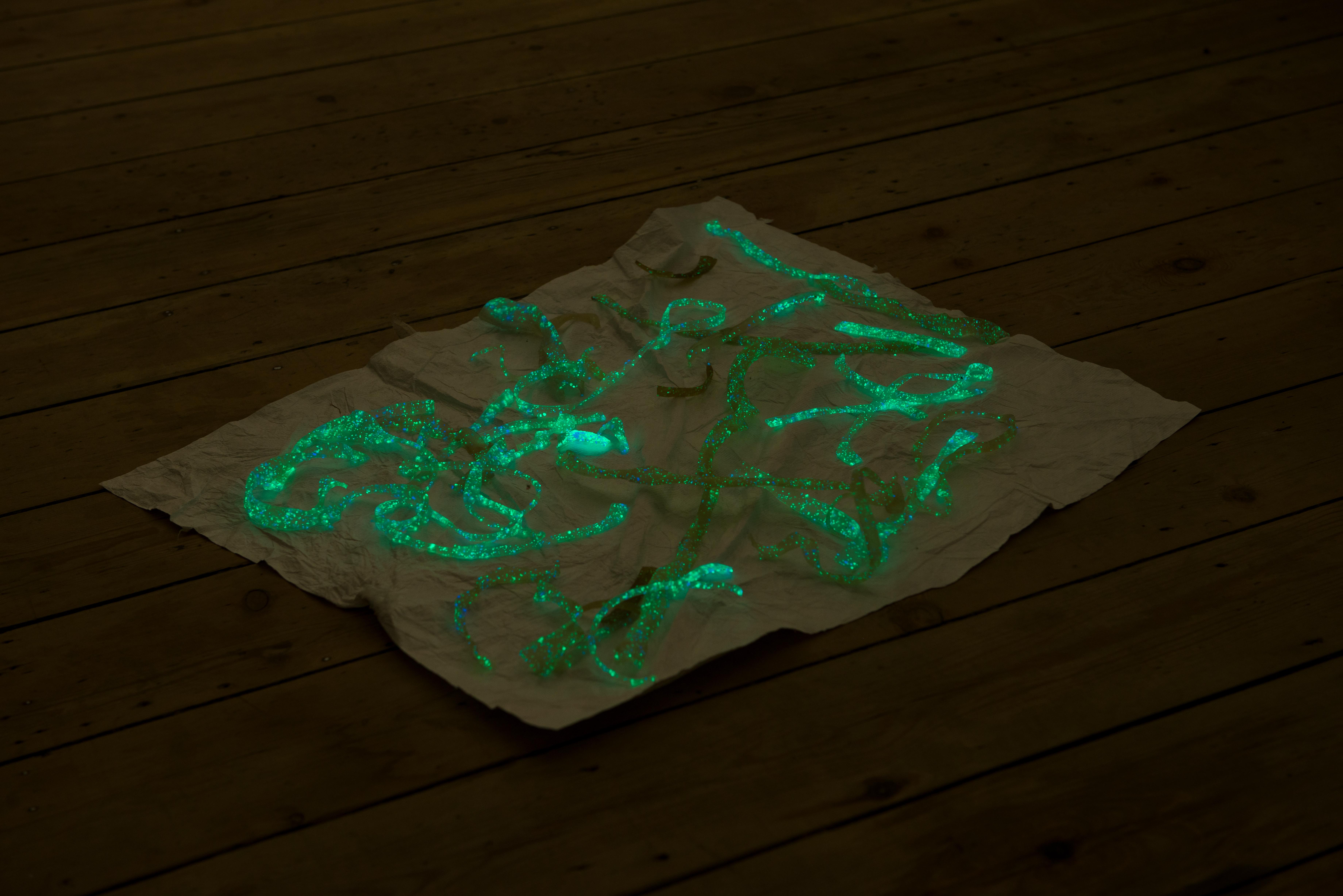 Within Abe bi rebewu a na ɛsɔ we experience cycles: the circulation of DVDs from gallery to domestic sphere, the movement of air through a propped open window, the processing of film, the absorption and release of light. Certain works are available, available on request, available elsewhere, textually available but materially absent. They are sensitive, weather specific, situated, or propped.